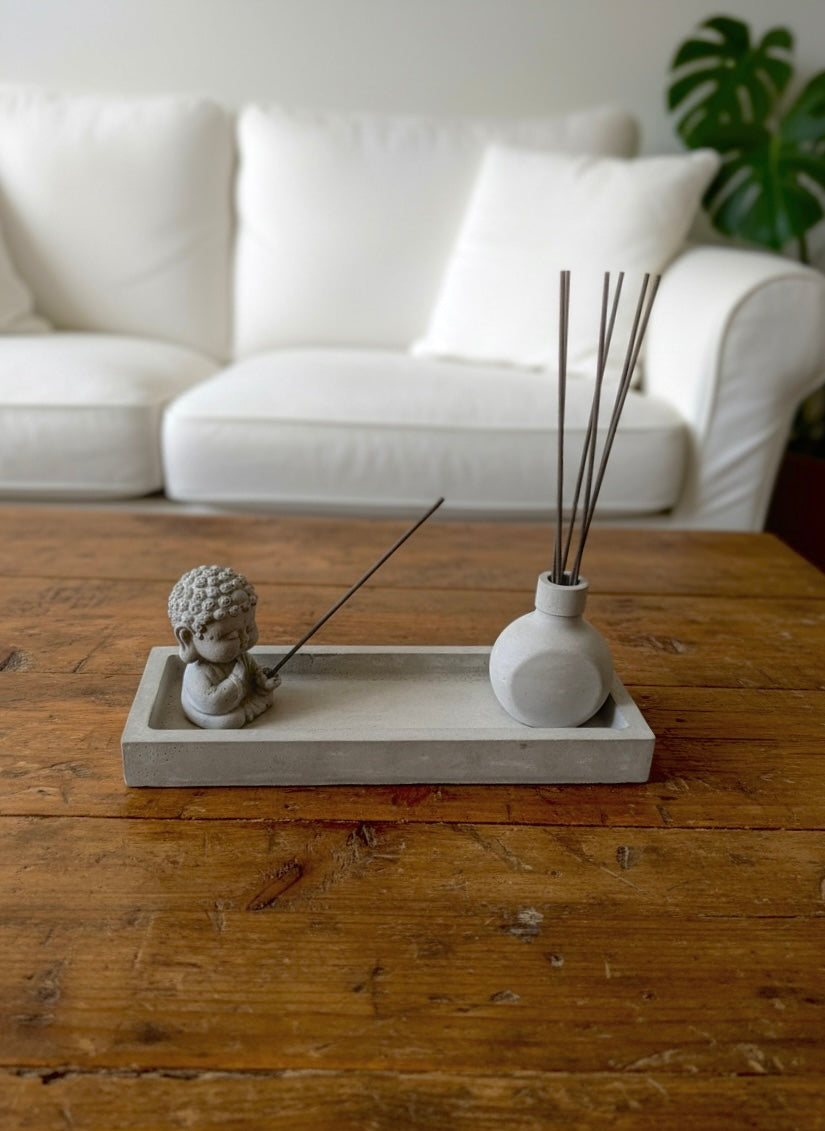 A refined expression of calm, this handcrafted piece inspired by Gautama Buddha brings a quiet sense of balance into any space. Sculpted with a soft concrete finish, it elevates everyday rituals into intentional moments of stillness.